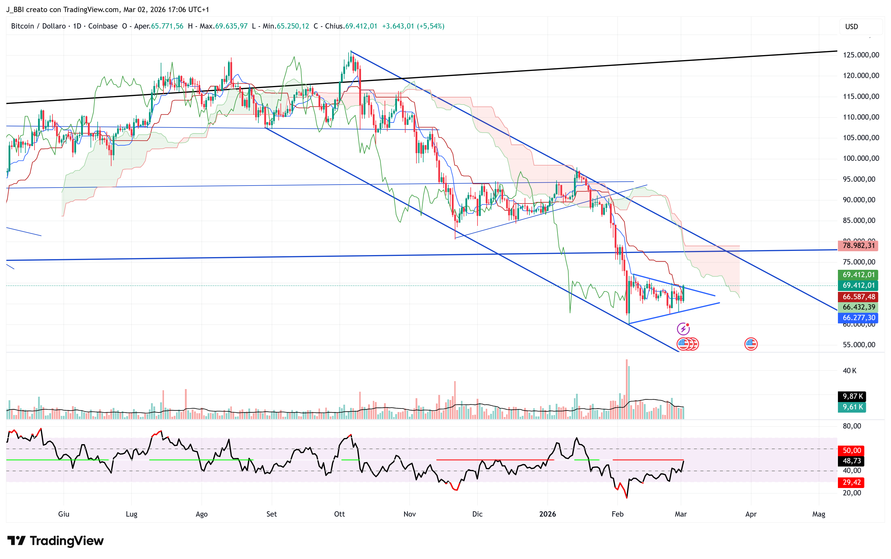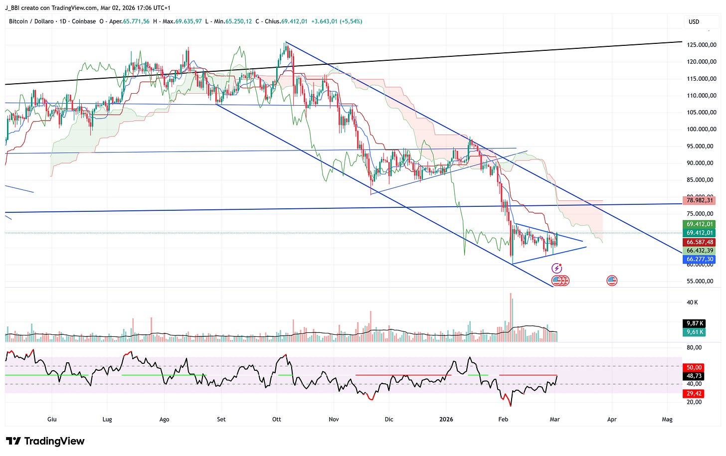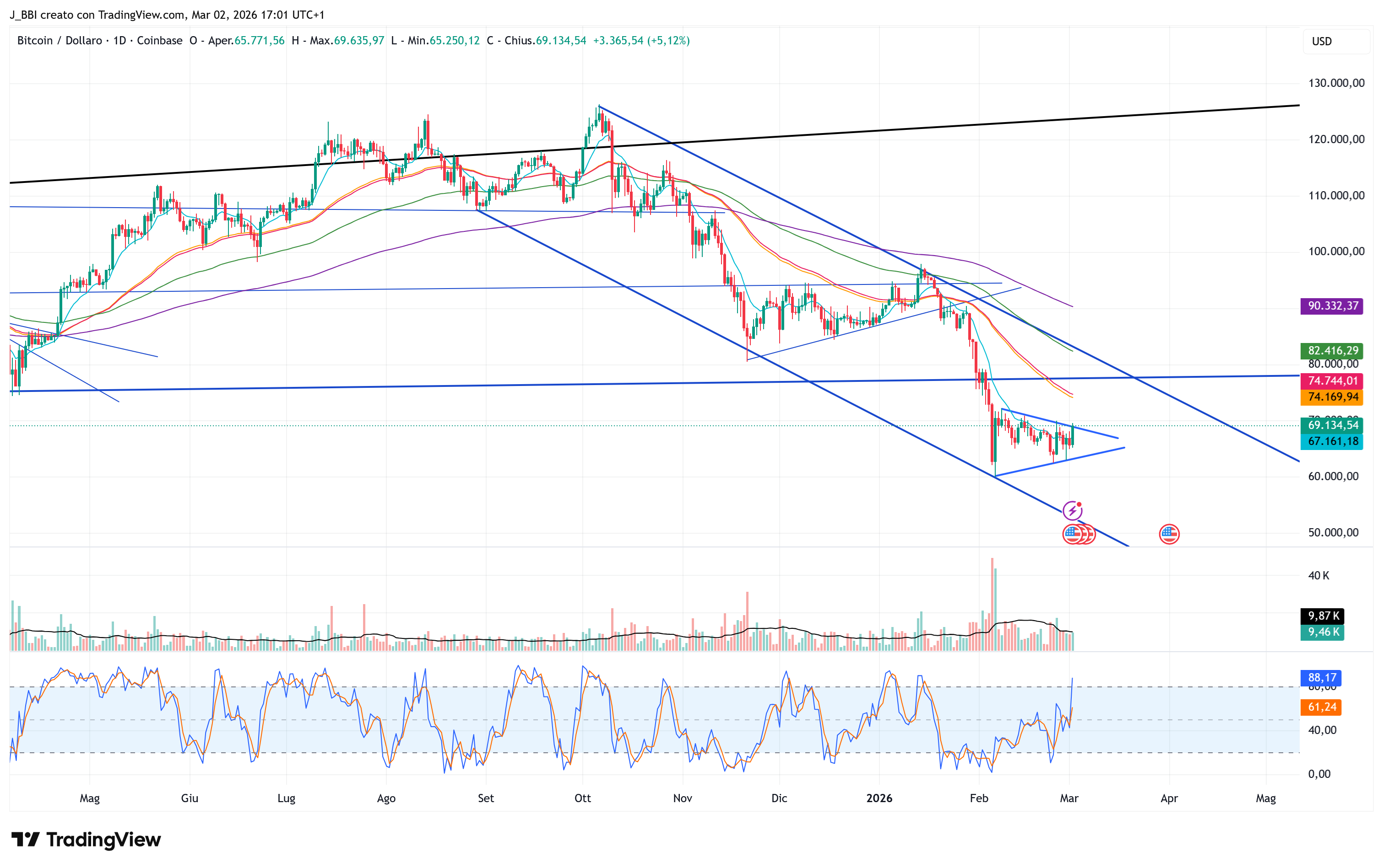 Vediamo che l’Oro è ancora long rispetto al Bitcoin, ma sta cominciando una fase di volatilità.