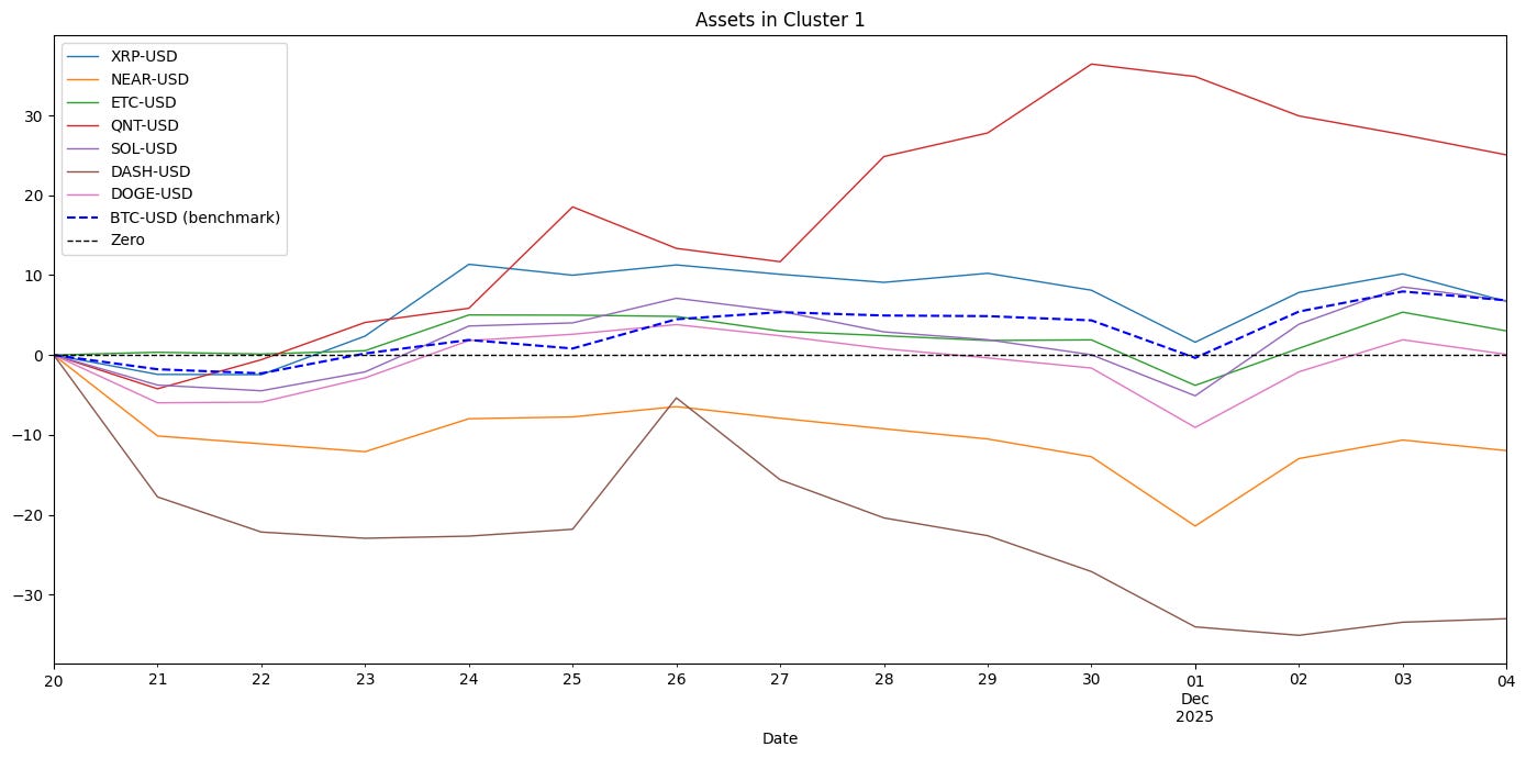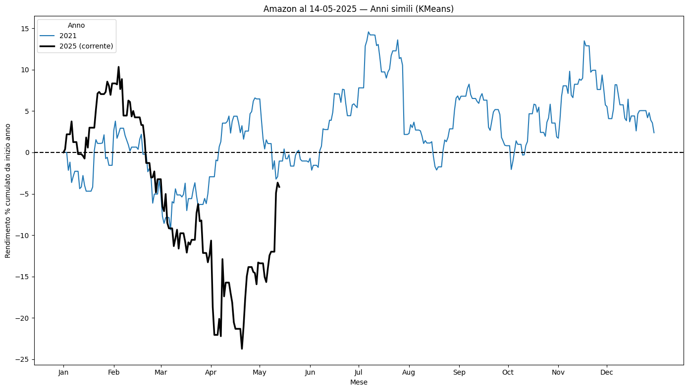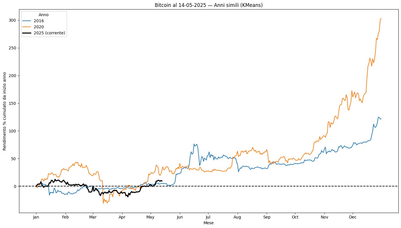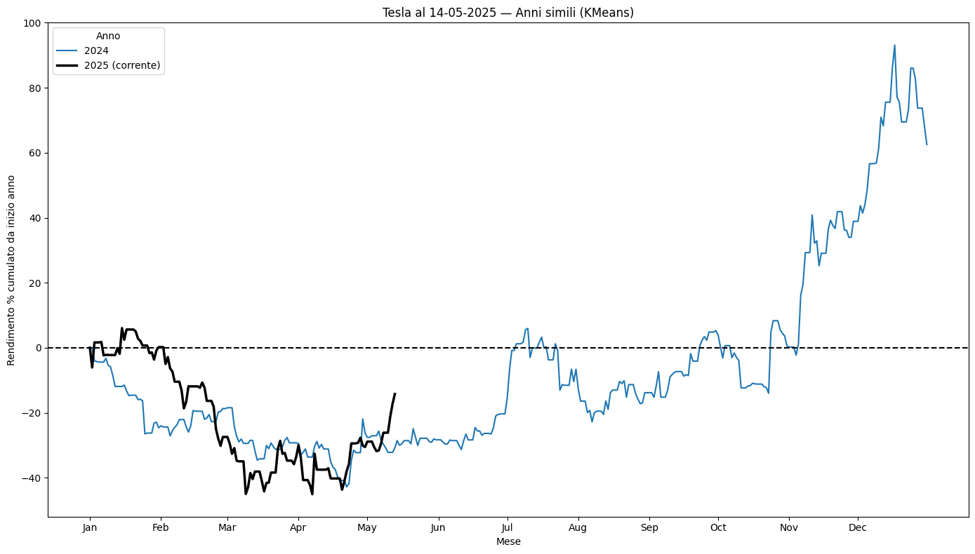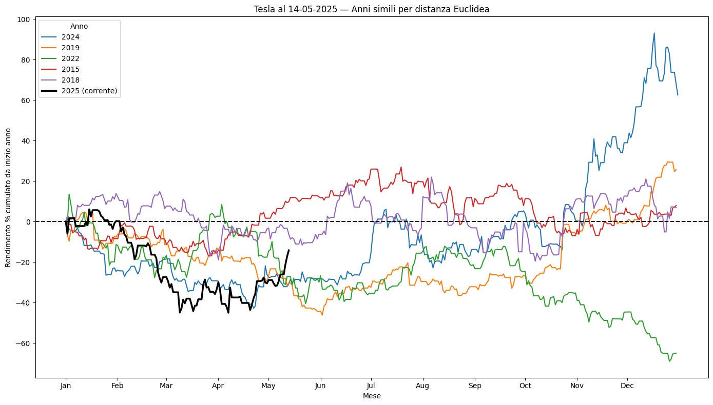 Passiamo ora al rendimento settimanale (7gg) calcolato su ogni singolo giorno, dal 1° dell'anno al 14-mag-2025.